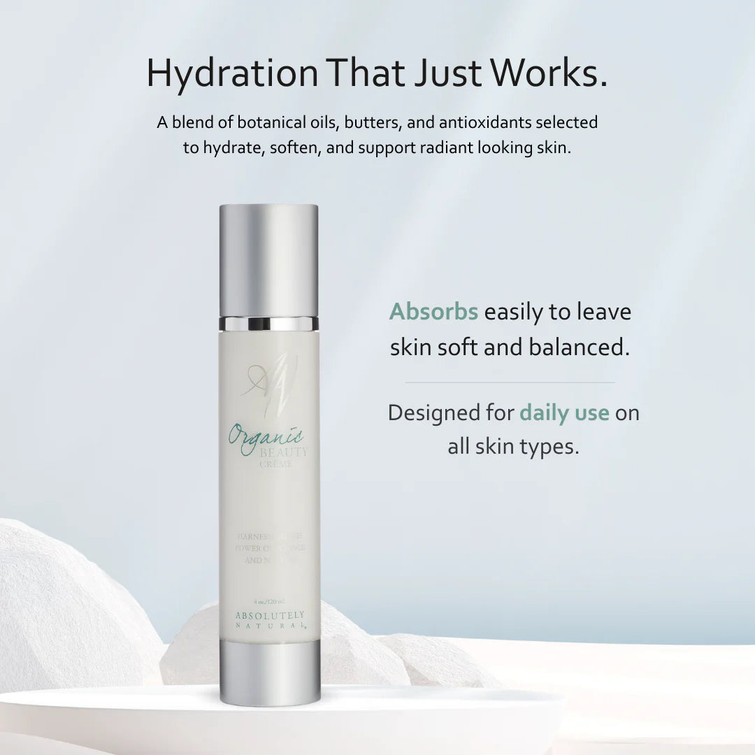 Our Organic Beauty Crème contains a medley of age-fighting antioxidants and essential fatty acids derived from nutrient and vitamin rich plants, blended into a smooth, ultra-nutrient rich crème. Frequent use of our Organic Beauty Crème will smooth the appearance of fine lines and scars and improve skin tone and texture, leaving your skin feeling smooth and velvety soft.
