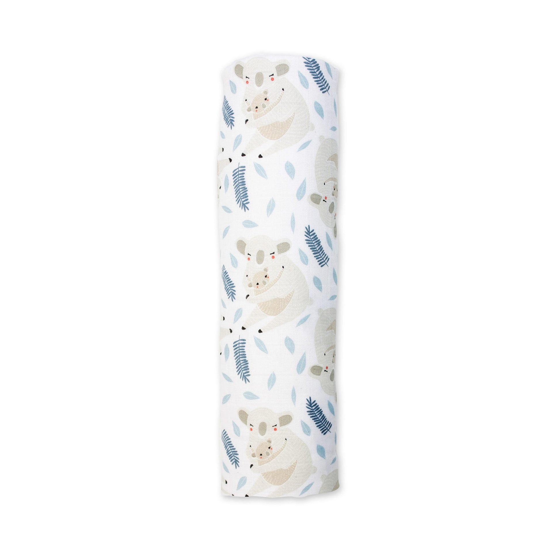 Wrap your little one in softness with this charming oversized cotton muslin blanket, featuring an adorable koala design on a crisp white background. Perfect for swaddling, tummy time, or cozy cuddles!