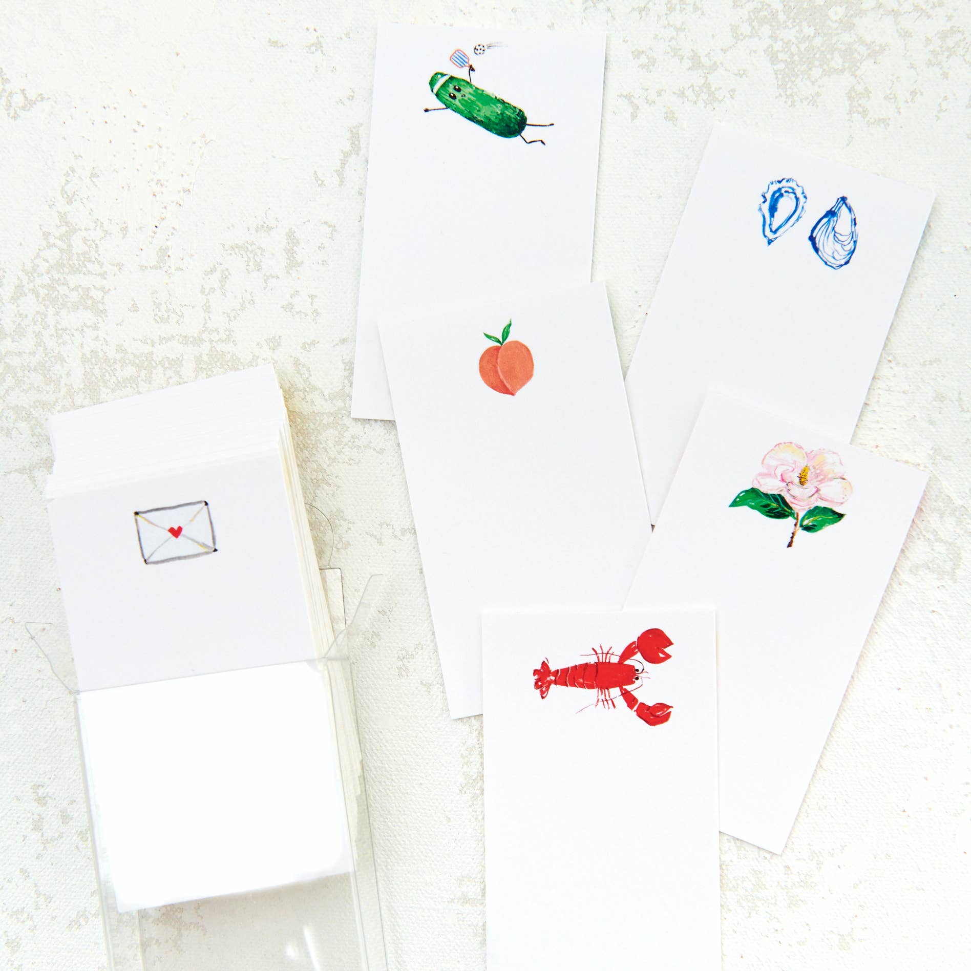 This boxed set features 50 petite cards (3.5 x 2.5 inches) printed on premium, uncoated cover stock with a smooth eggshell texture. Each card has lined backs perfect for jotting down extra notes or sending a quick thank you!